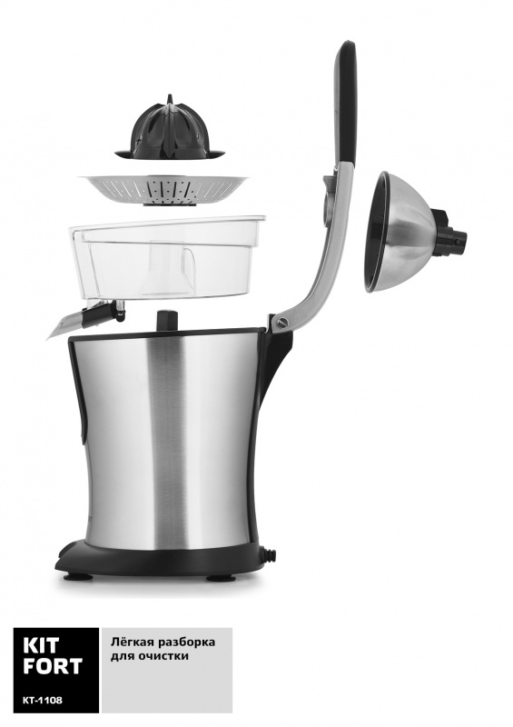 Соковыжималка цитрусовая Kitfort КТ-1108 160Вт серебристый/черный