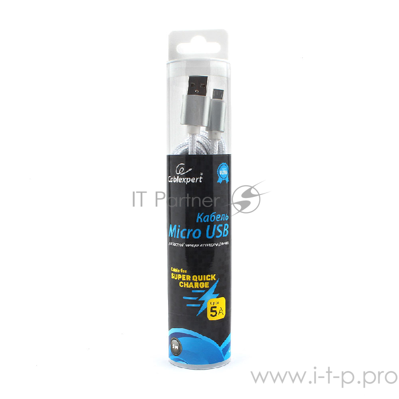 Кабель USB 2.0 Cablexpert CC-U-mUSB02S-3M, AM/microB, серия Ultra, длина 3м, серебристый, блистер