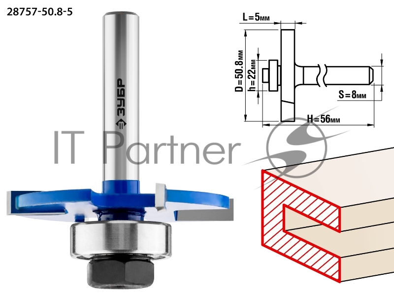 Фреза ЗУБР 28757-50.8-5 горизонтально-пазовая d= 50.8мм высота-5мм хв.-8мм d-22мм профессионал
