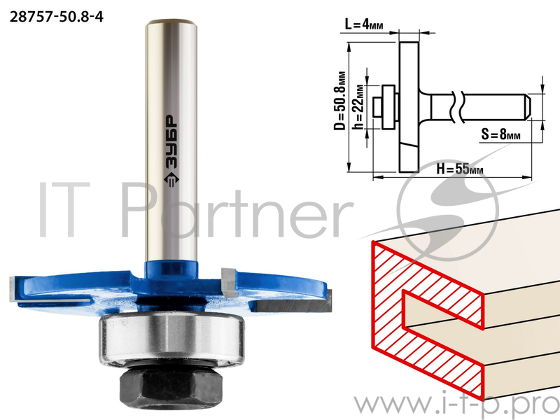 Фреза ЗУБР 28757-50.8-4 горизонтально-пазовая d= 50.8мм высота-4мм хв.-8мм d-22мм профессионал