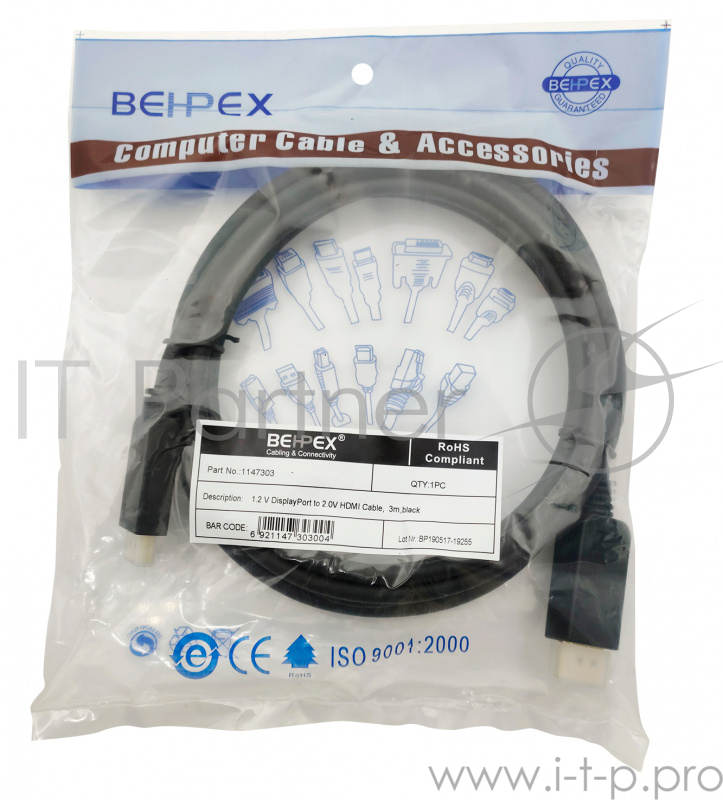 Кабель 1.2v ver2.0 DisplayPort (m) HDMI (m) 3м