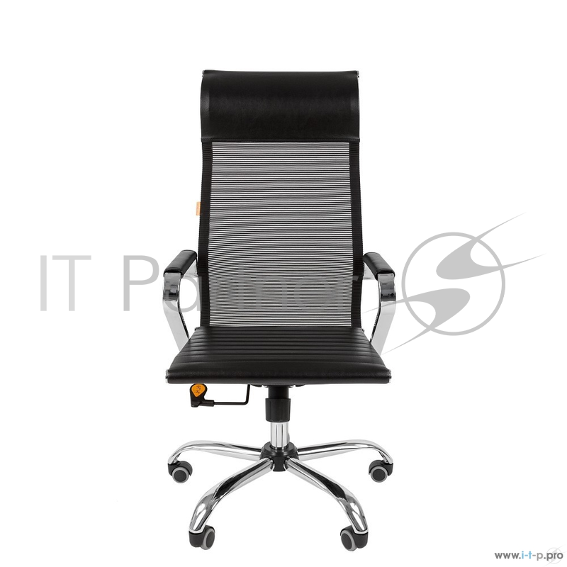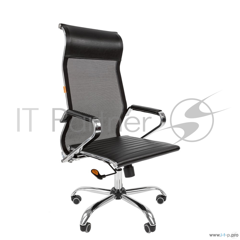 Офисное кресло Chairman 701 чёрное (экокожа, спинка сетка, хромированный металл, газпатрон 3 кл, ролики, механизм качания)