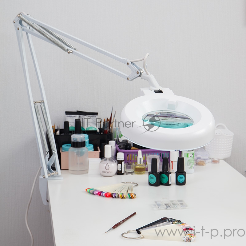 REXANT Лупа на струбцине круглая настольная 3Х с подсветкой, белая 31-0001