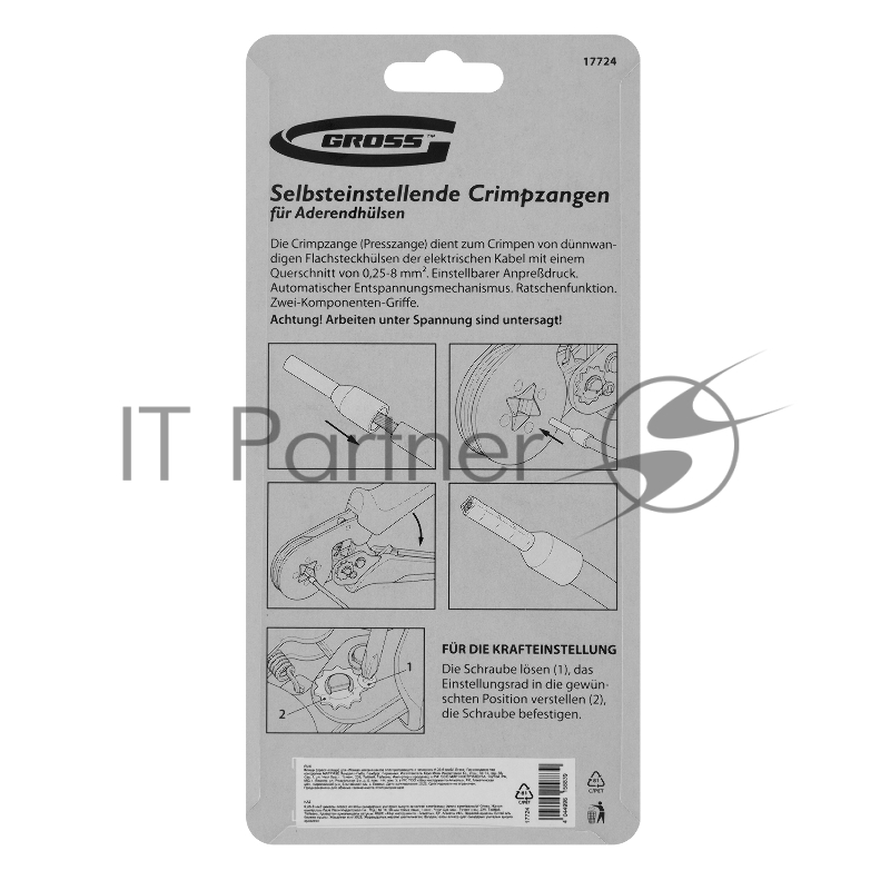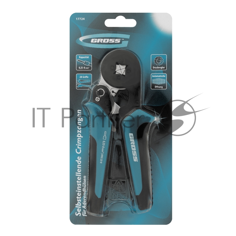 GROSS Клещи для обжима наконечников электропроводов с сечением 0,25-8 мм2 17724