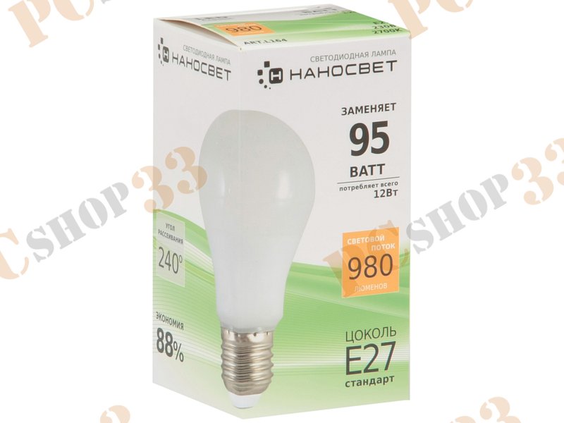 Лампа светодиодная Наносвет LE-GLS-12/E27/827 ART.L164, E27, 12Вт, теплый белый