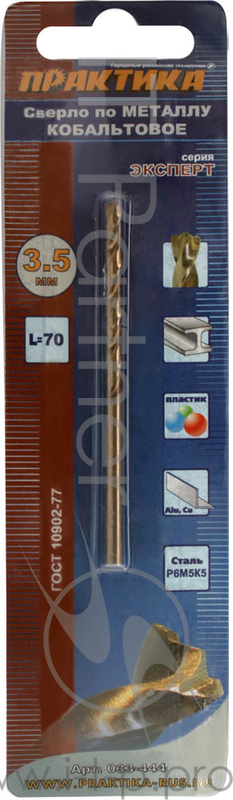 Сверло по металлу ПРАКТИКА 033-444 3.5х70мм кобальтовое, в блистере