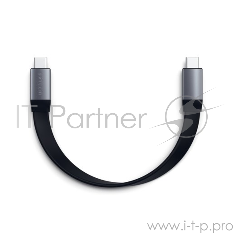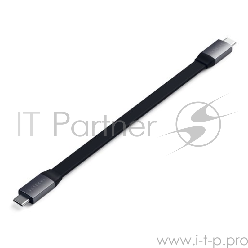 Кабель Satechi Flat USB-C to USB-C, длина 22,8 см. Поддержка мощности 100Вт. Цвет черный.
