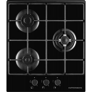 Газовая варочная поверхность Kuppersberg Газ, Газовая варочная поверхность, закаленное стекло, ширина 45 см, 3 газовые конфорки, WOK конфорка повышенной мощности, автоподжиг, газ-контроль, чугунные решетки, цвет черный / кромка FACET