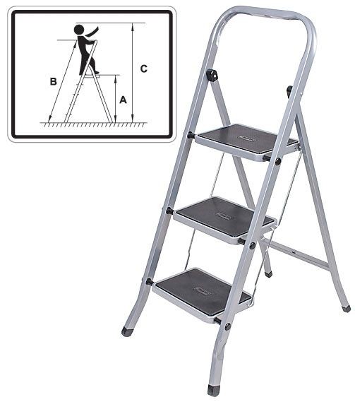 Лестница-стремянка стальная FIT РОС 3 широкие ступени, Н=105 см, вес 4,7 кг [65382]