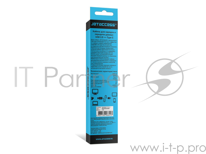 Кабель для зарядки и передачи данных Jet.A JA-DC35 1м красный (в оплётке,USB2.0/USB TypeC,QC3.0, 2A)