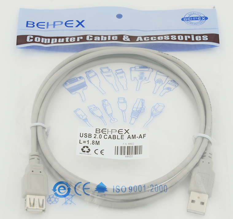 Описание: Стандартный кабель-удлинитель для устройств USB 2.0. Может быть использован для увеличения длины кабелей клавиатуры, мыши, Web-камеры, картридера и прочих устройств. Длина 1,8 метра.