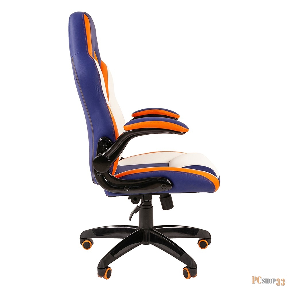 Chairman game 15 синий/белый/оранжевый Игровое кресло (экокожа, регулируемый угол наклона, механизм качания)