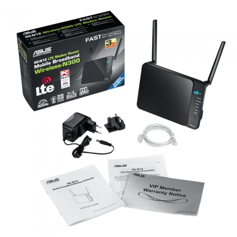 Модем ASUS 4G-N12 B1, WiFi Modem Router, IEEE 802.11 b/g/n IPv4, 2.4GHz, LTE, 5xRJ45 for 10/100 BaseT, 1xSim Card RTL {10}