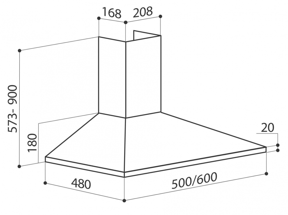 Высота вытяжки (мин/макс): 57.3x90см