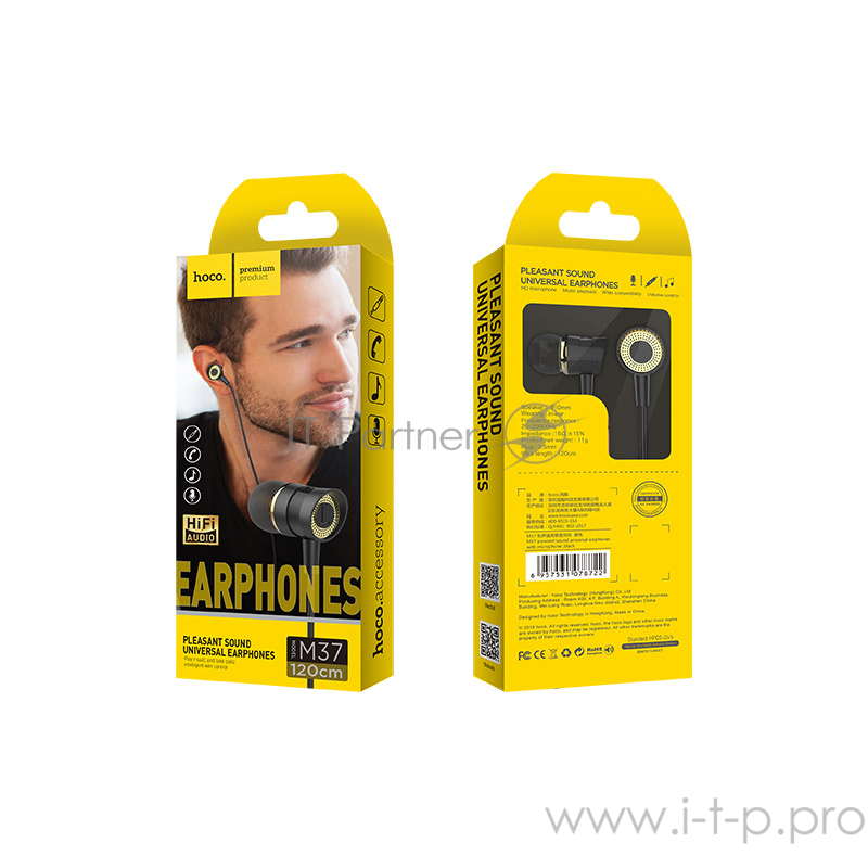 Проводные наушники-вставки с микрофоном Hoco M37 Black