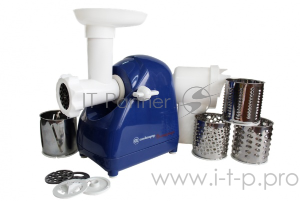 Мясорубка Белвар Помощница КЭМ-П2У 302-07, синий, максим. мощность 1500 Вт, реверс, 2 сменные решетки, насадка для профилирования теста, насадка для набивки колбас