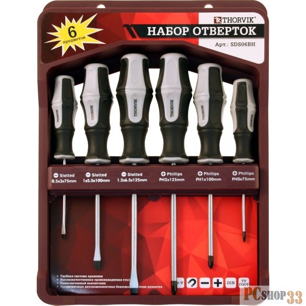 Thorvik SDS06BH Набор отверток стержневых с крепежной планкой, 6 предметов