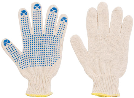 Перчатки вязаные РОС (4 нити), х/б, с ПВХ, 10 класс вязки [12484]