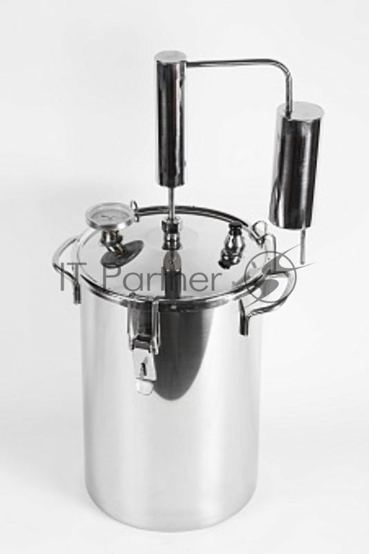Дистиллятор Первач Элит 20Т домашний, 20л, термометр, клапан избыт. давления, сухопарник со сливом отходов, охладитель, съемная крышка