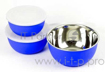 Набор мисок 0036, 3шт нерж с/к покр.пласт. СИНИЙ (d15см+d18см+d20см) [КУХНЯ]