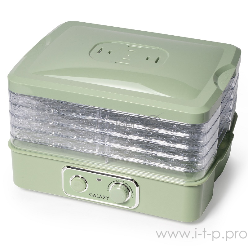 Сушилка для овощей и фруктов Galaxy GL2636, мятный(4шт) Сушилка электрическая для овощей и фруктов мощность350 Вт,5 прозрачных регулируемых по высоте поддонов, регулятор температуры, напряжение 220-240 Вт, частота 50