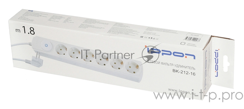 Сетевой фильтр Ippon BK212-16 1.8м (6 розеток) белый (коробка)