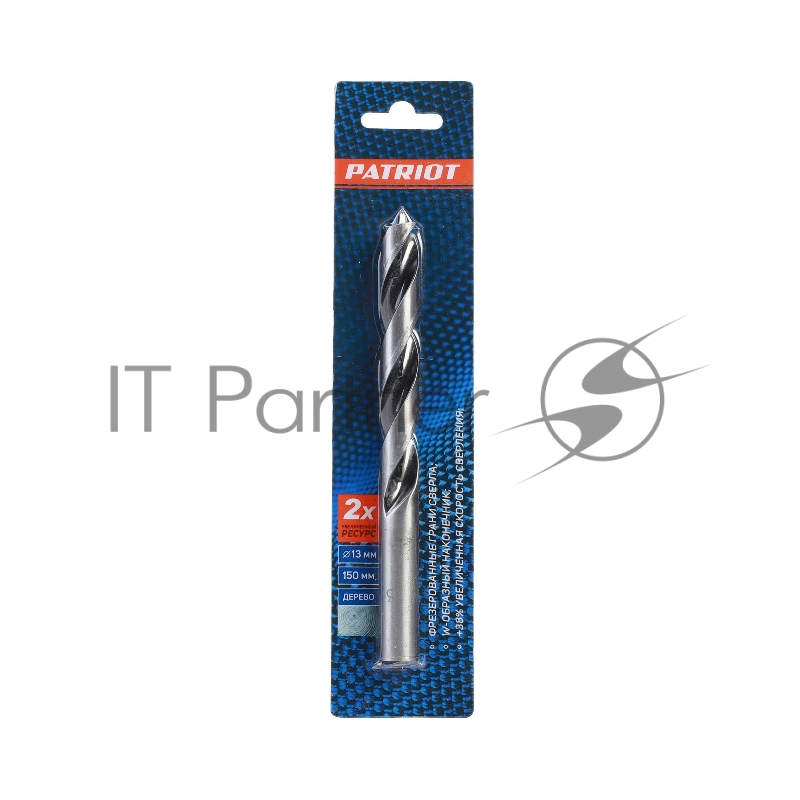 Сверло EDGE by PATRIOT по дереву спиральное 13 мм, W-образная заточка, 1 шт в блистере