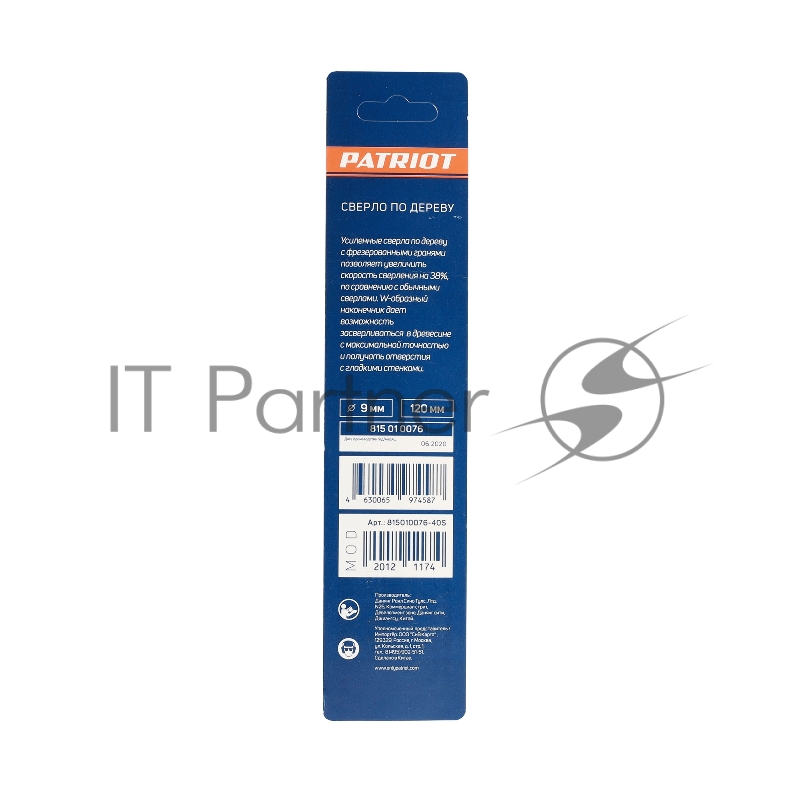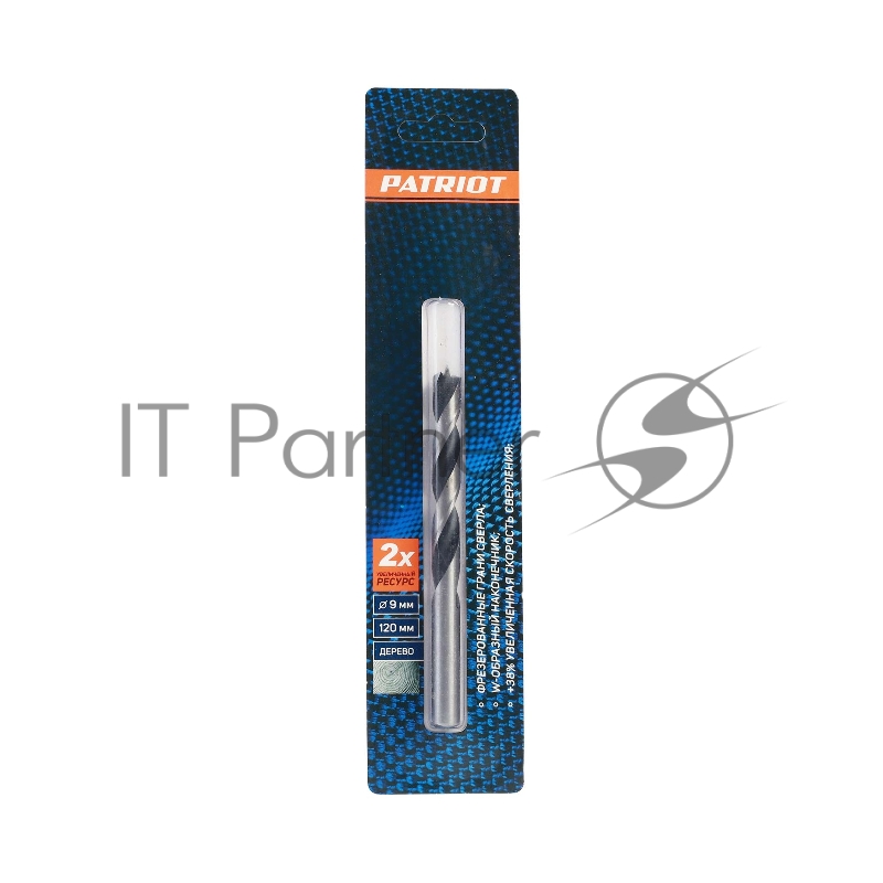 Сверло EDGE by PATRIOT по дереву спиральное 9 мм, W-образная заточка, 1 шт в блистере