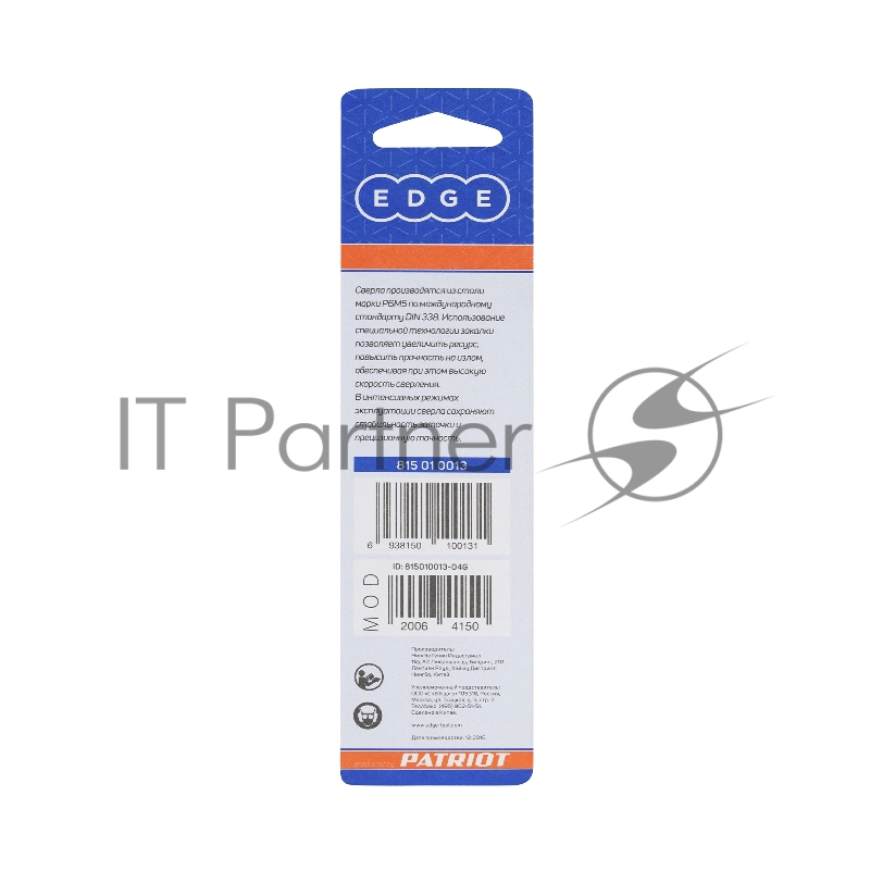 Сверло EDGE by PATRIOT по металлу 6,5 мм, 1шт в блистере