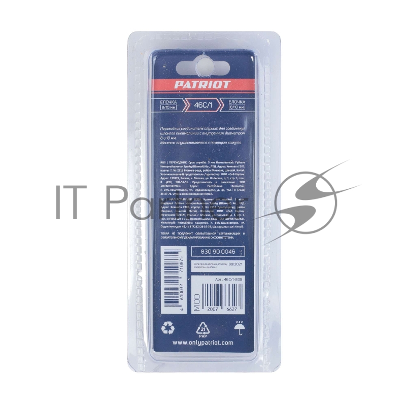 Переходник PATRIOT 46C/1 (елочка 8/10мм - 8/10мм)