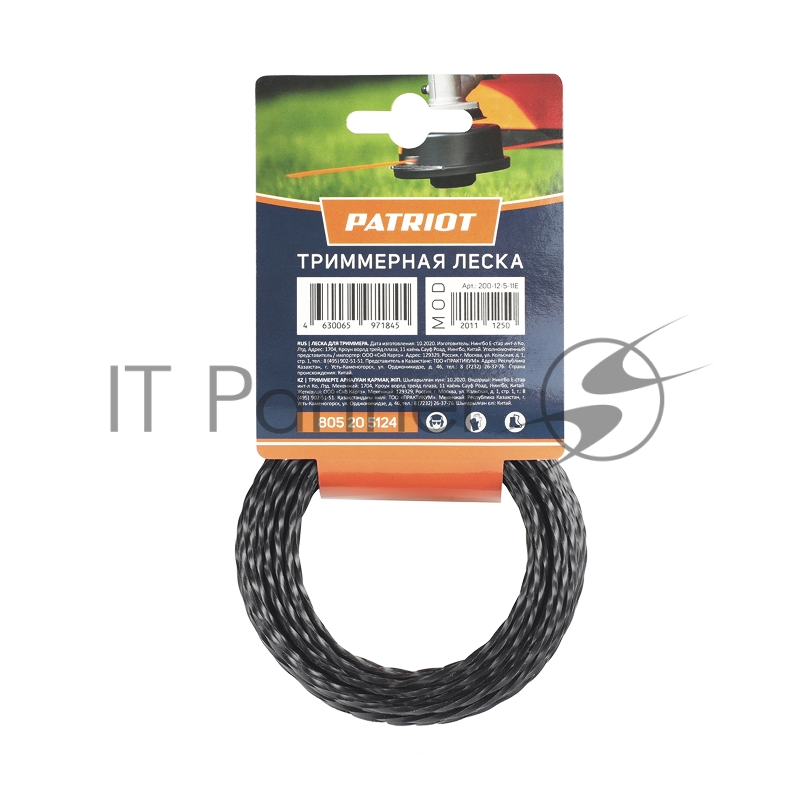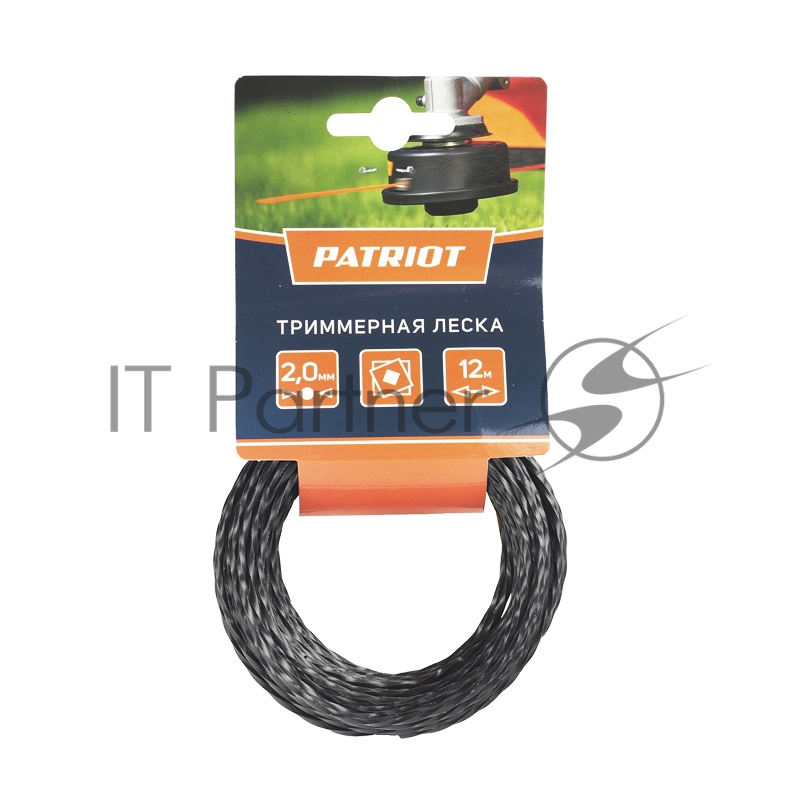 Леска PATRIOT D 2,0 мм L 12 м (скрученный квадрат, черный) 200-12-5, картонный подвес