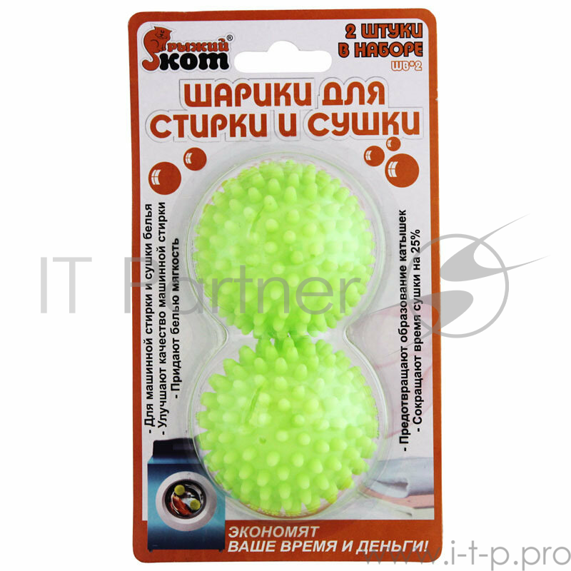 Шарики для стирки и сушки Рыжий кот WB*2, 2 шт. в наборе, материал: пластик