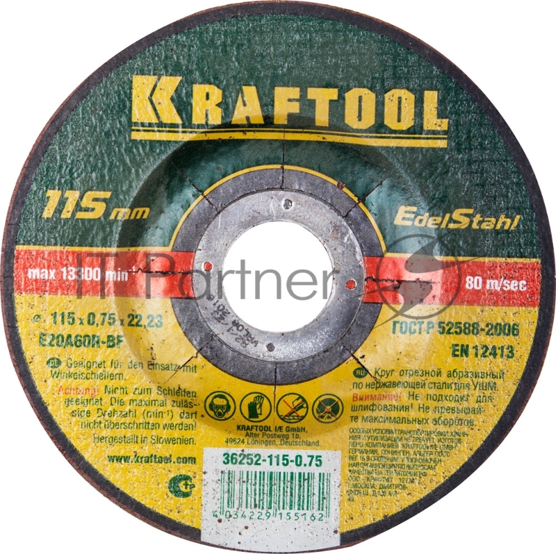 Круг отрезной по нерж стали, 115x0,75x22,23мм, KRAFTOOL