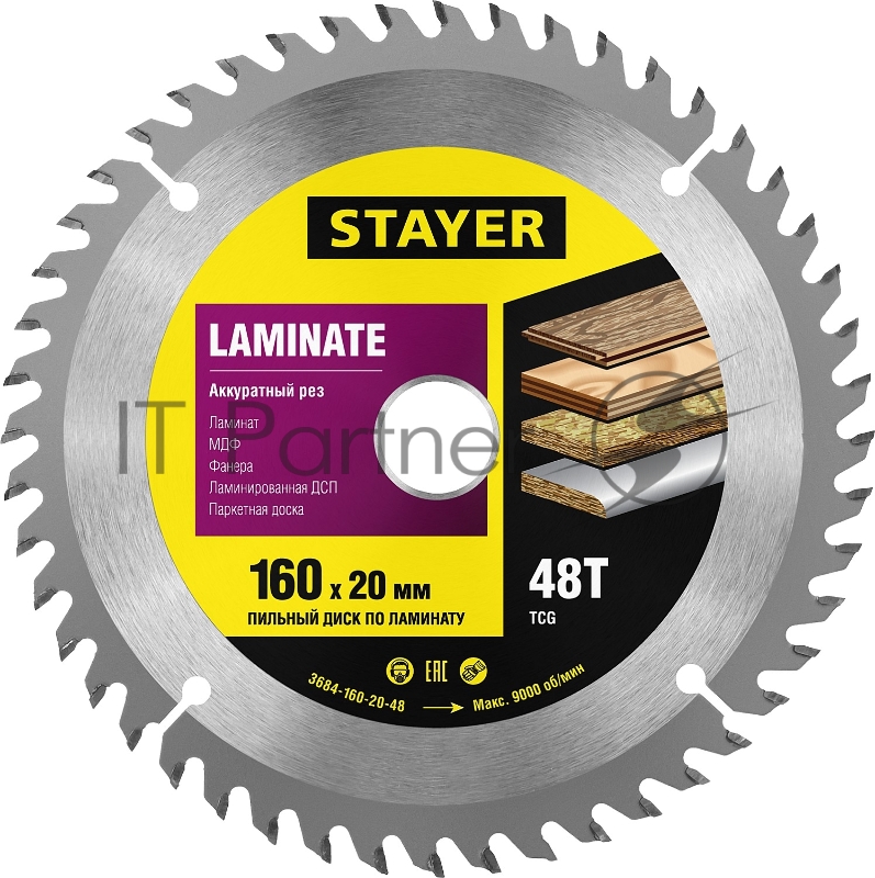 Диск пильный по ламинату STAYER Laminate 160 x 20мм 48T, аккуратный рез, аккуратный рез