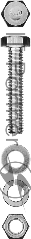 Болт (DIN933) в комплекте с гайкой (DIN934), шайбой (DIN125), шайбой пруж. (DIN127), M8 x 30 мм, 5 шт, ЗУБР