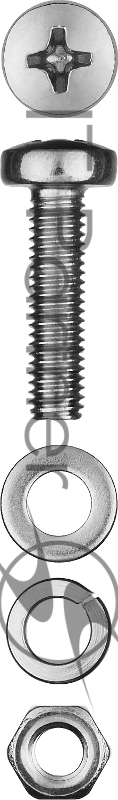Винт (DIN7985) в комплекте с гайкой (DIN934), шайбой (DIN125), шайбой пруж. (DIN127), M4 x 20 мм, 24 шт, ЗУБР