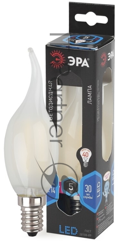 ЭРА Б0027928 Светодиодная лампа свеча на ветру матовая F-LED BXS-5w-840-E14 frozed