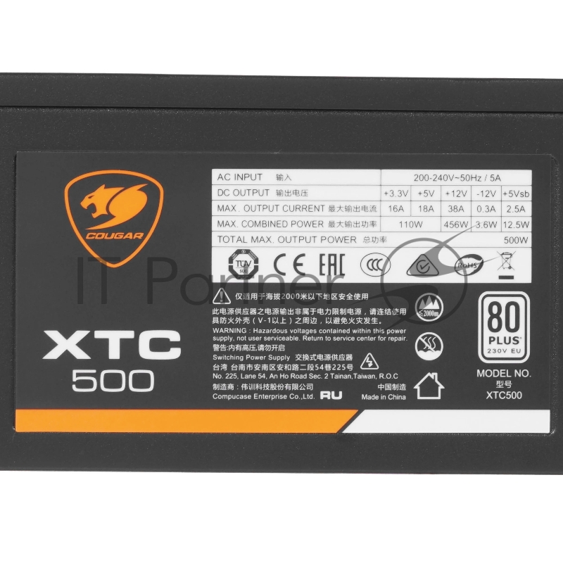 ![Блок питания Cougar XTC 500 (Разъем PCIe-2шт,ATX v2.31, 500W, Active PFC, 120mm Fan, Power cord, 80 Plus, Japanese standby capacitors) [XTC500] BULK](/shop/img/foto_big/566016_6.jpg)