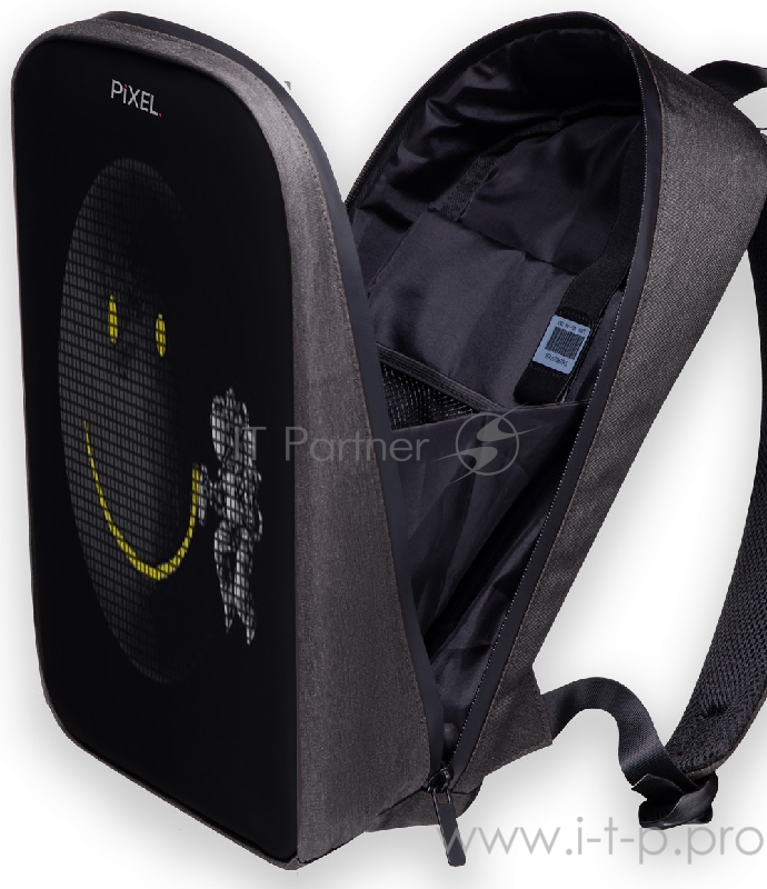 Рюкзак PIXEL PLUS Silver светло-серый (LED-экран 25*25 px, 16,5 млн цветов, 16 л., полиэстер)