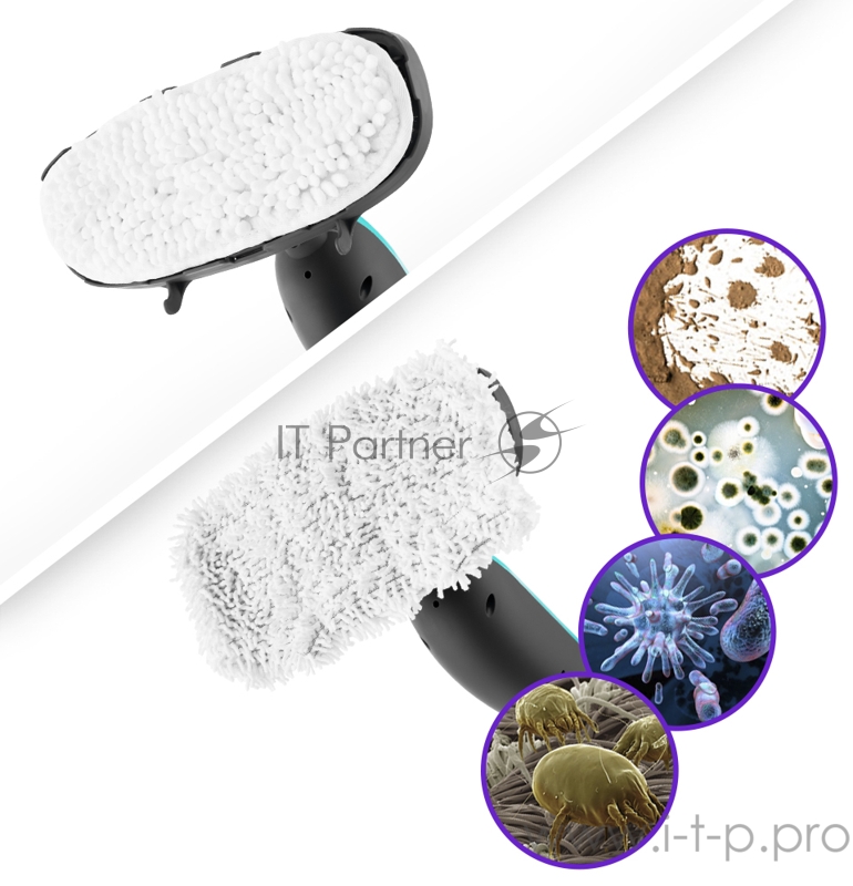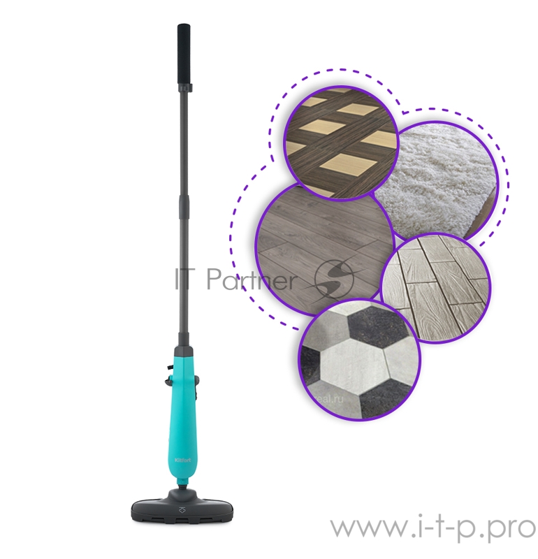 Паровая швабра КТ-1011-3 бирюзовый. Принцип действия паровой швабры Kitfort KT-1011 основан на воздействии горячего пара на загрязнения. Пар проникает внутрь загрязнения, размягчая и растворяя его, а затем с помощью тряпки или щётки частички грязи см