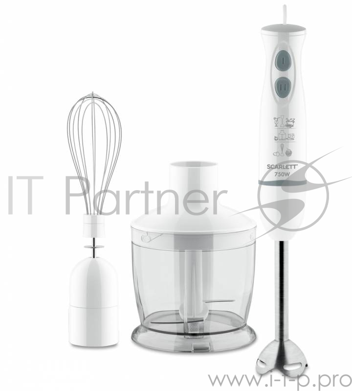 Блендер SCARLETT SC-HB42F80 белый Максимальная мощность 750 Вт, 3 в 1: подходит для измельчения, взбивания, смешивания, Измельчитель 0.5л, Насадка блендер из нержавеющей стали « Steel Pro», Венчик для взбивания, 2 скорости работы, Эргономичная ручка