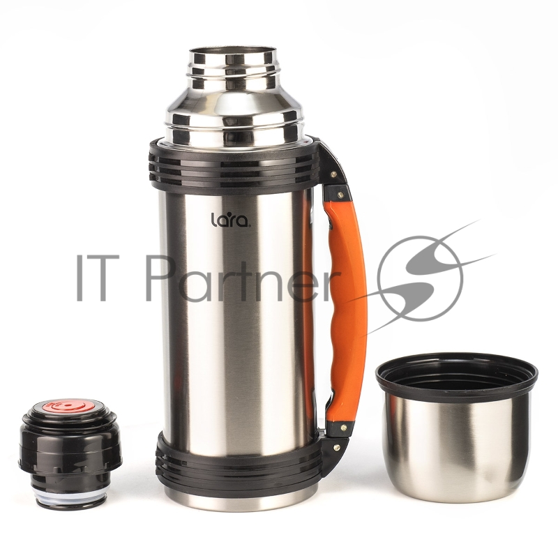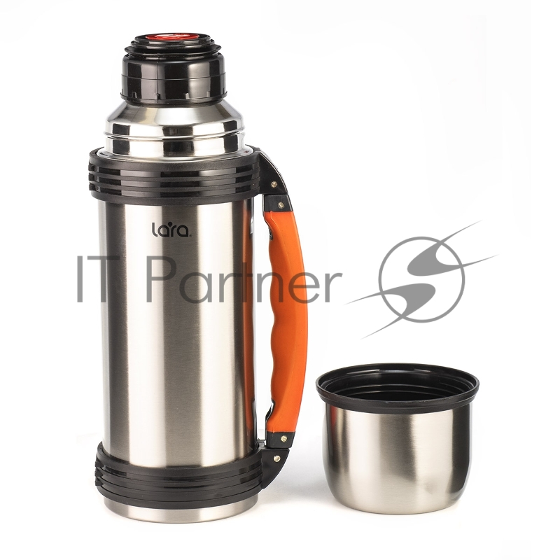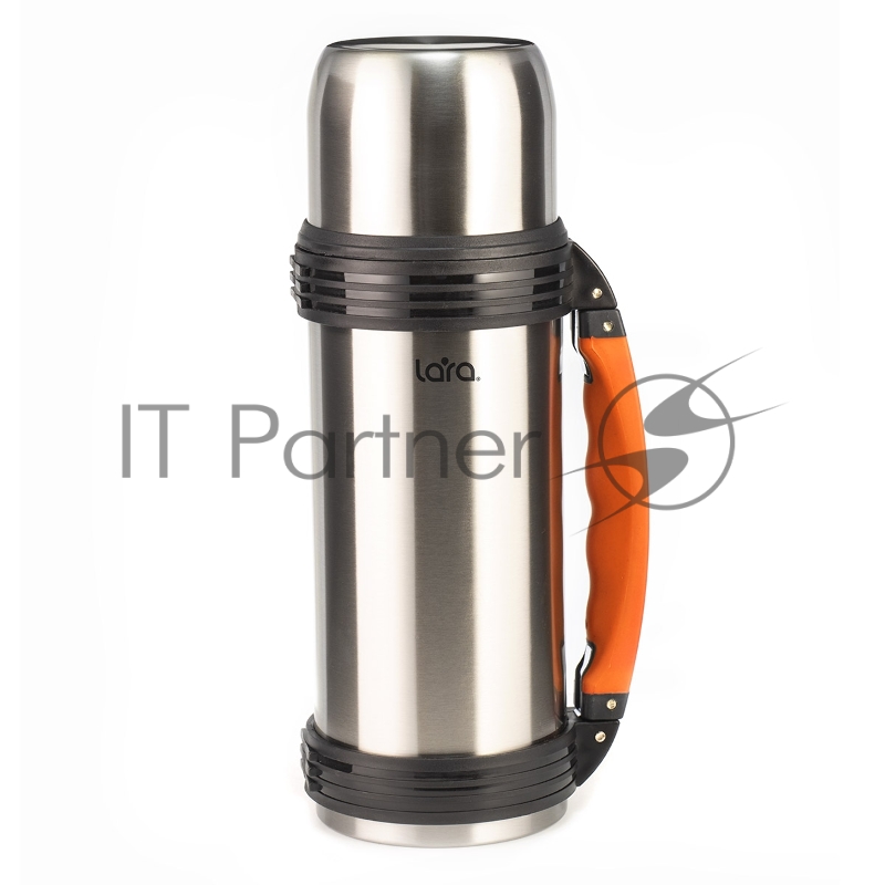 LR04-03 термос LARA - 1.20л, ручка, кнопка, ремешок, двойные стенки, крышка-стаканчик, нерж сталь