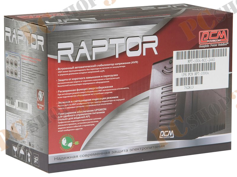 ИБП (UPS) 1000ВА Powercom Raptor RPT-1000A, тип F, черный