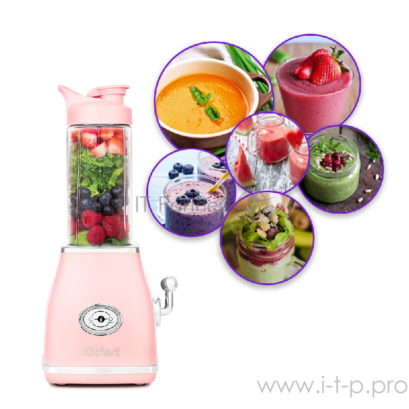 Блендер Kitfort Мощность: 250 Вт.Емкость чаши: 0,5 л.Материал корпуса: пластик,розовый.