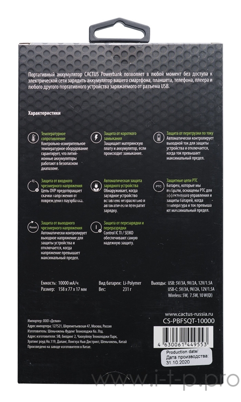 Купить Power bank Cactus CS-PBFSQT-10000 в Коврове. Заказать на сайте. Забрать в "Ваш Компьютер" г.Ковров пр-т Ленина 20