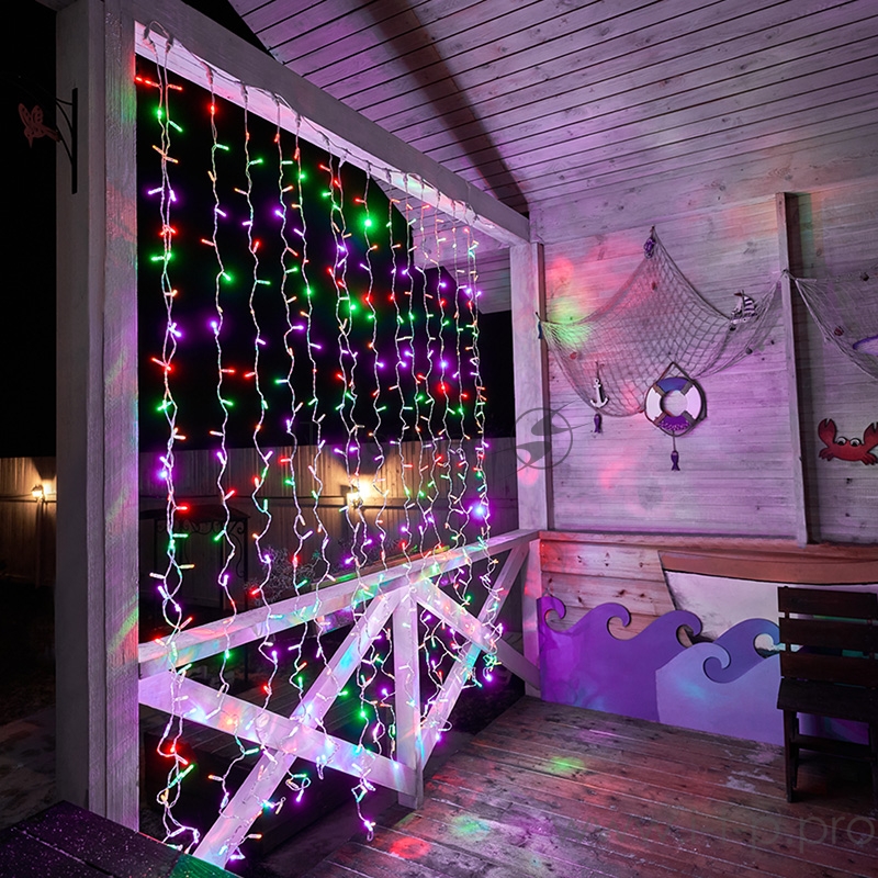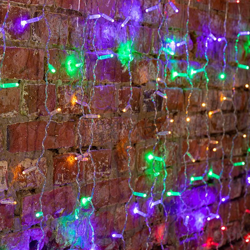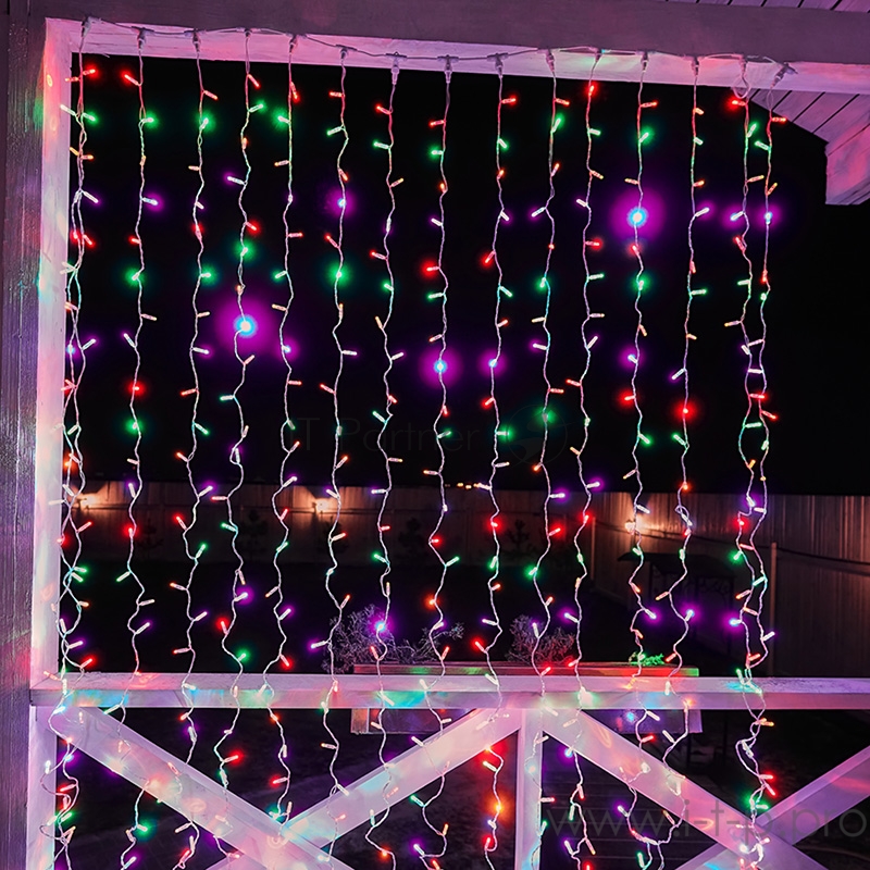 Гирлянда Светодиодный Дождь 2х3м, постоянное свечение, прозрачный провод, 230 В, диоды МУЛЬТИ, 448 LED NEON-NIGHT