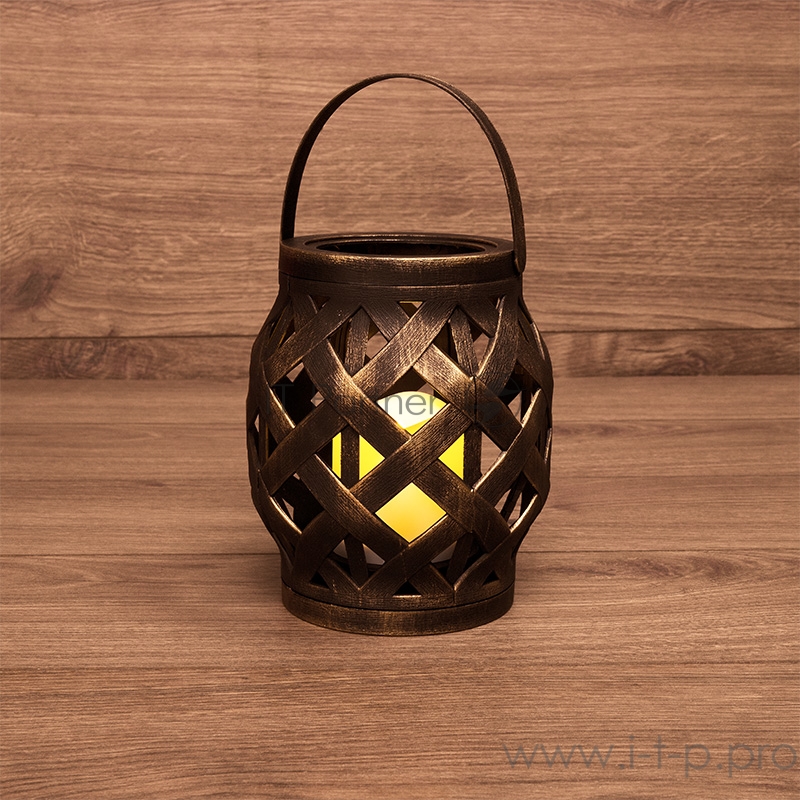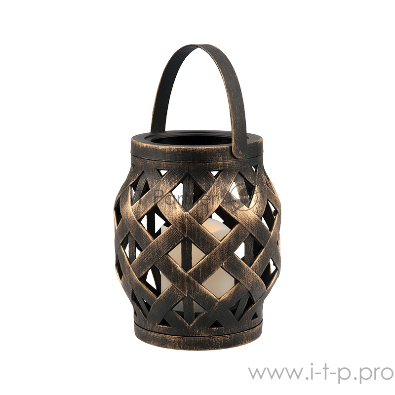 Декоративный фонарь со свечкой, плетеный корпус, бронза, размер 14х14х16,5 см, цвет теплый белый