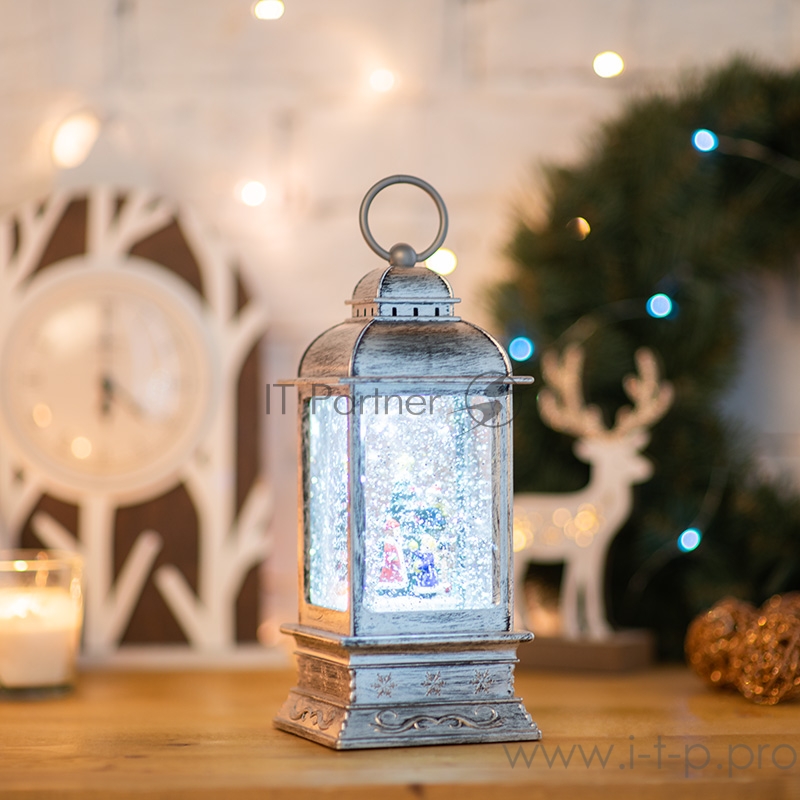 Декоративный фонарь с эффектом снегопада и подсветкой «Рождество», белый