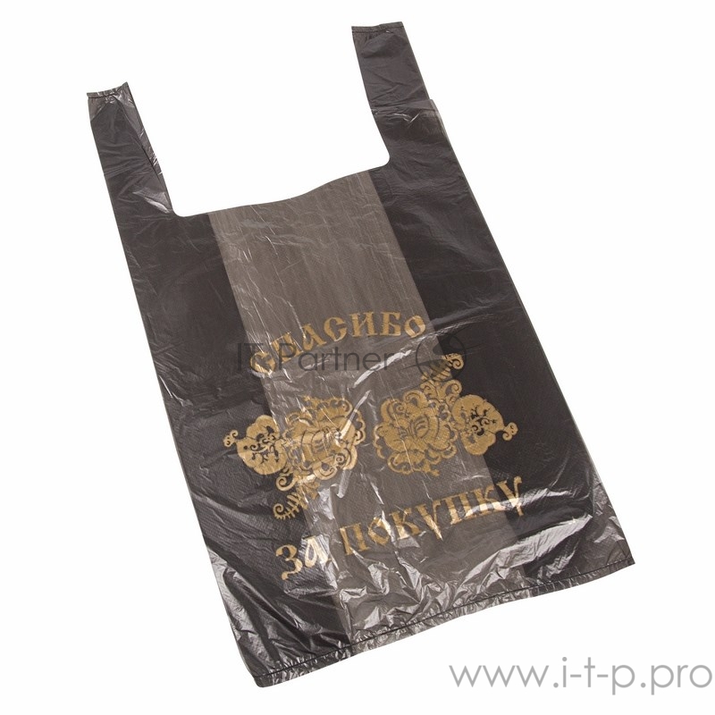 Пакет майка ПНД 28+16*50, 12мкм Спасибо (100шт./уп) черная