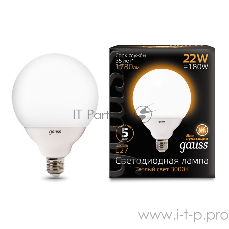 Лампа светодиодная Led G125 E27 22Вт 3000К Gauss 105102122